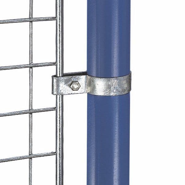 Jednoduchá spona k přichycení drátěné sítě k trubkové konstrukci.